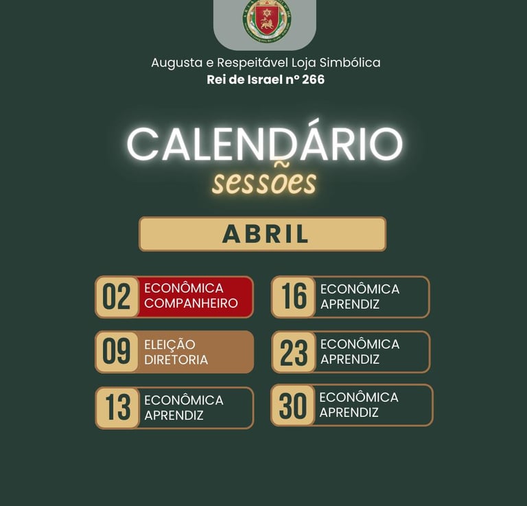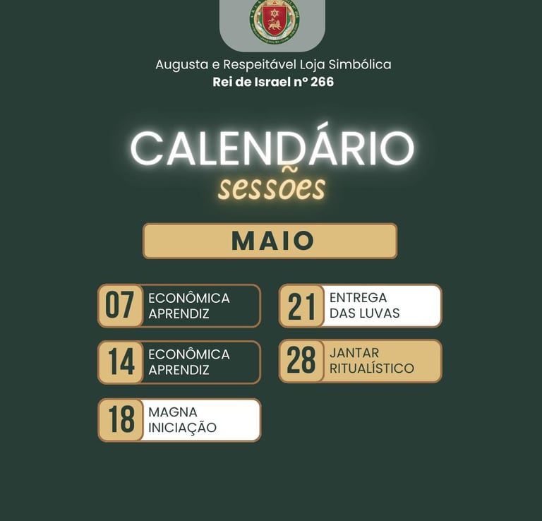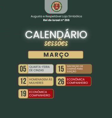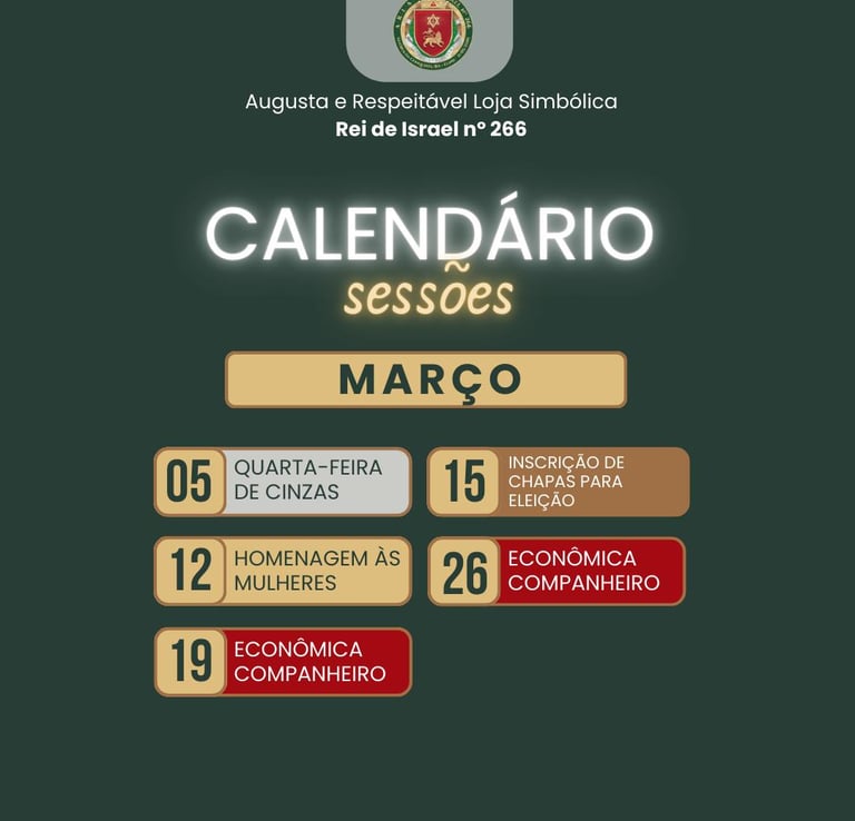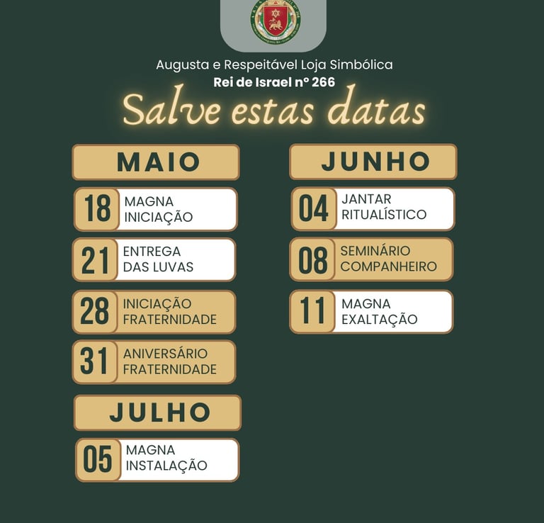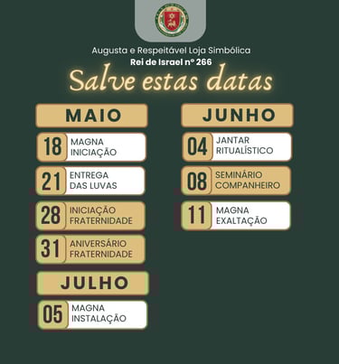 Confira as datas importantes e não perca nenhuma oportunidade de fortalecer a fraternidade e o aprendizado.